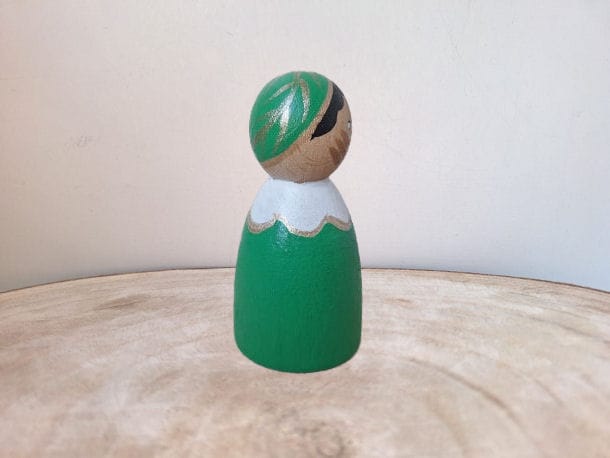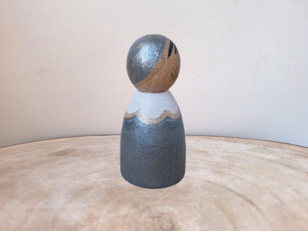 Er zijn 6 pietjes van ca. 60 mm in de kleuren geel, groen, metallic blue, oranje, paars, roze.